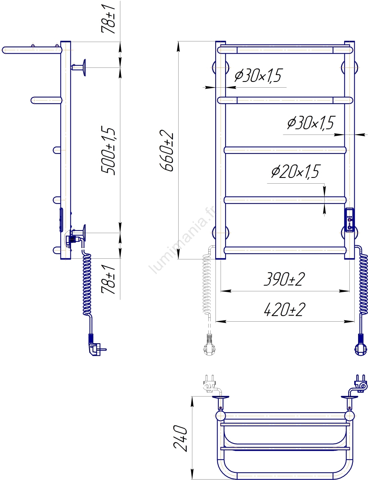 Radiateur sèche-serviettes HOTEL 75 W/230 V, 65 x 43 cm, inox/noir, version droite