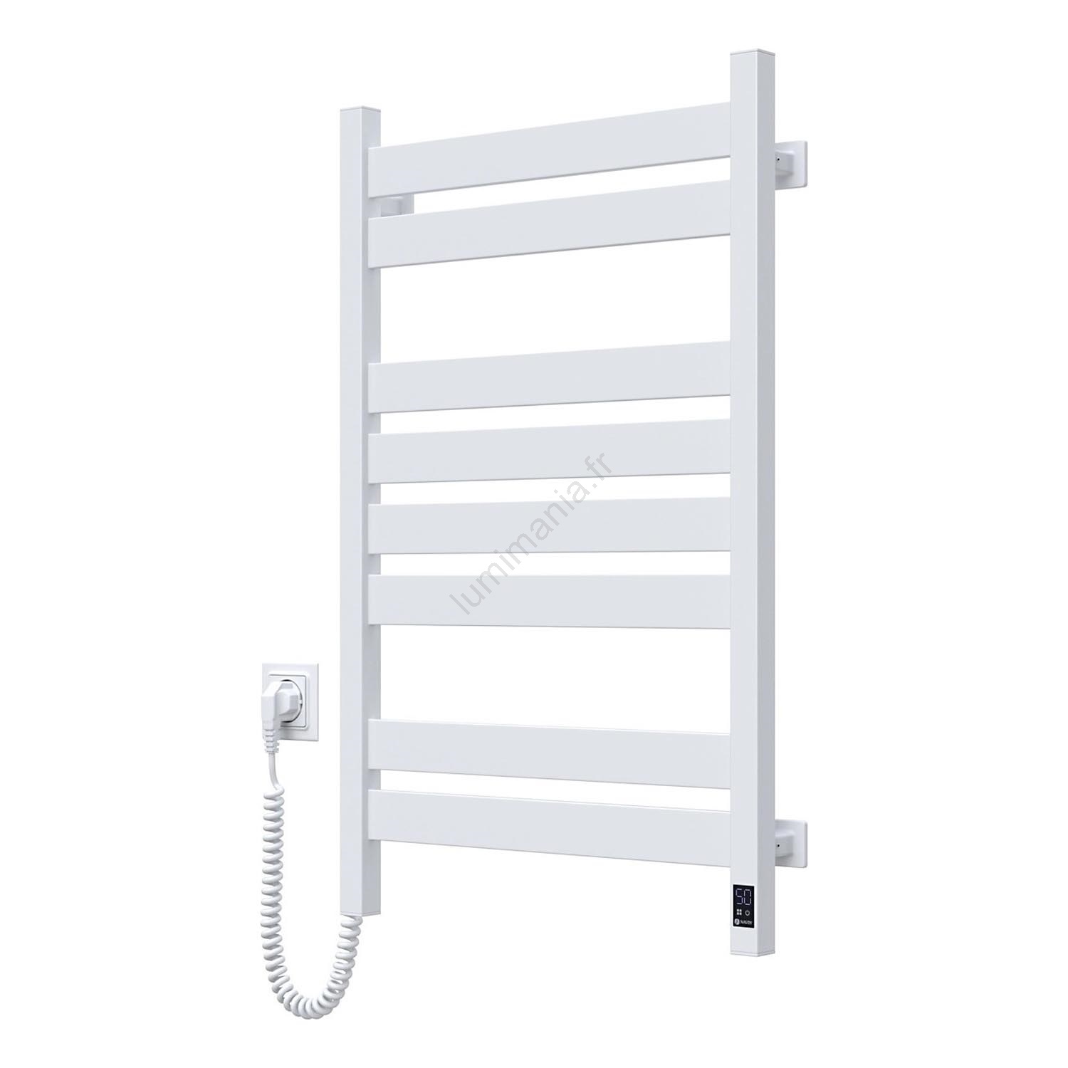 • Sèche-serviettes électrique LARGO 168 W 80 x 50 cm avec thermostat, blanc, raccordement gauche
