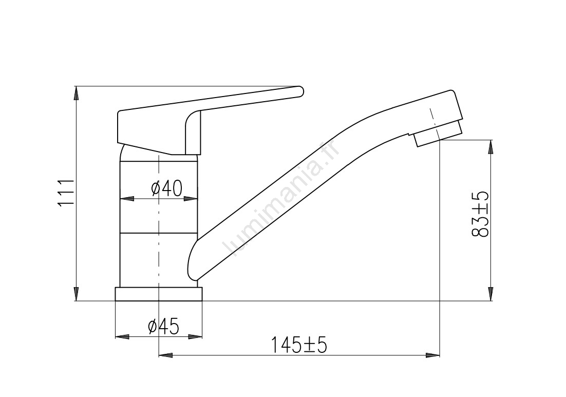 • Mitigeur de lavabo sur plage sans vidage, avec bec orientable de 150 mm.
