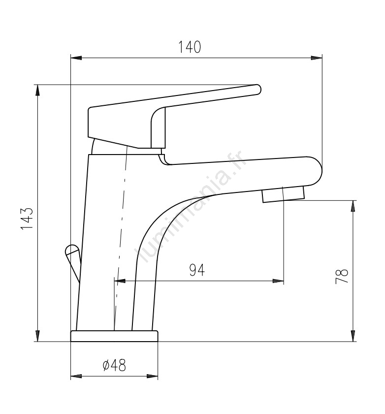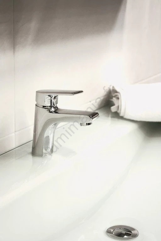 • Mitigeur monobloc pour lavabo, montage sur plage, avec bonde.