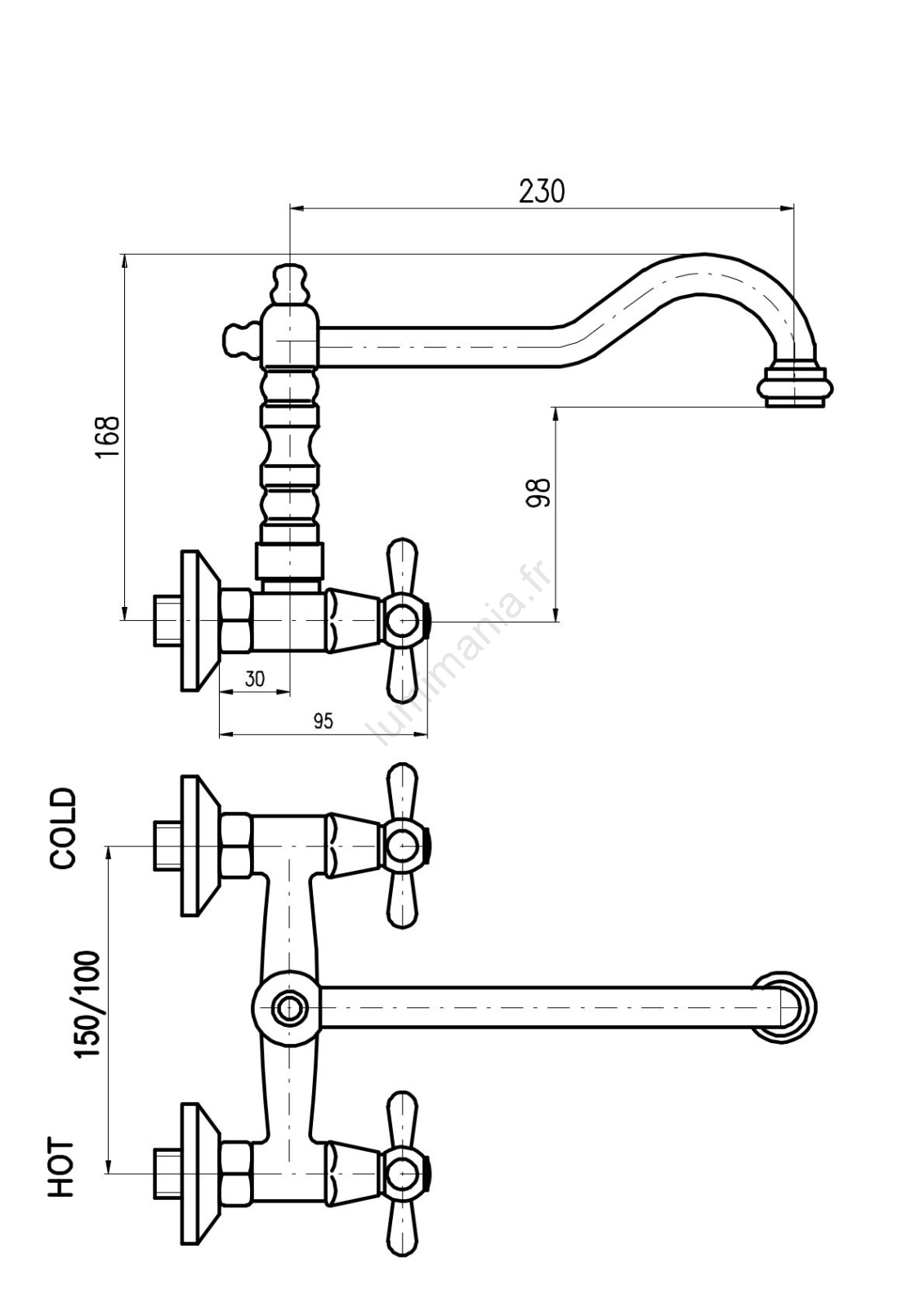 RAV Slezák MK102.5/28SM - Mitigeur évier/vasque MORAVA RETRO 16,8 cm laiton patiné