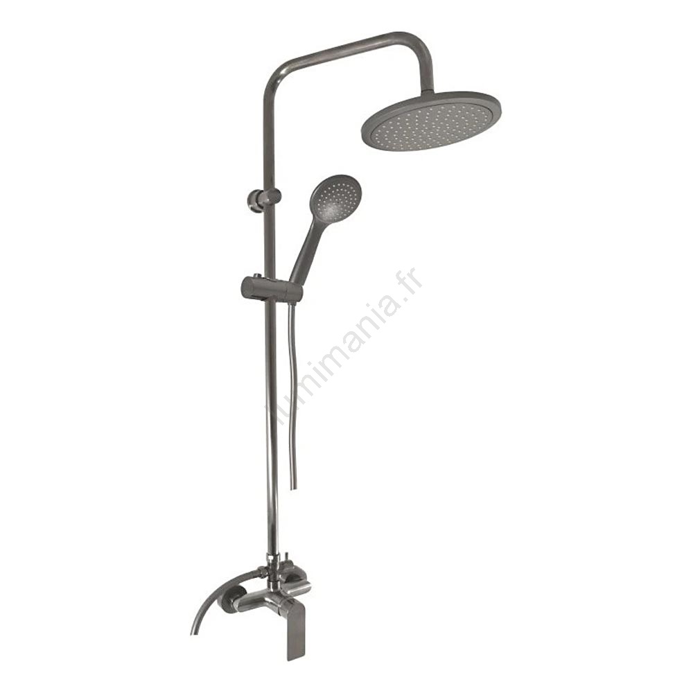 • L'ensemble comprend : mitigeur de douche, douchette à main en plastique (diam. 103 mm), pommeau de douche en plastique (diam. 230 mm), flexible de douche en plastique (1500 mm), barre de douche.