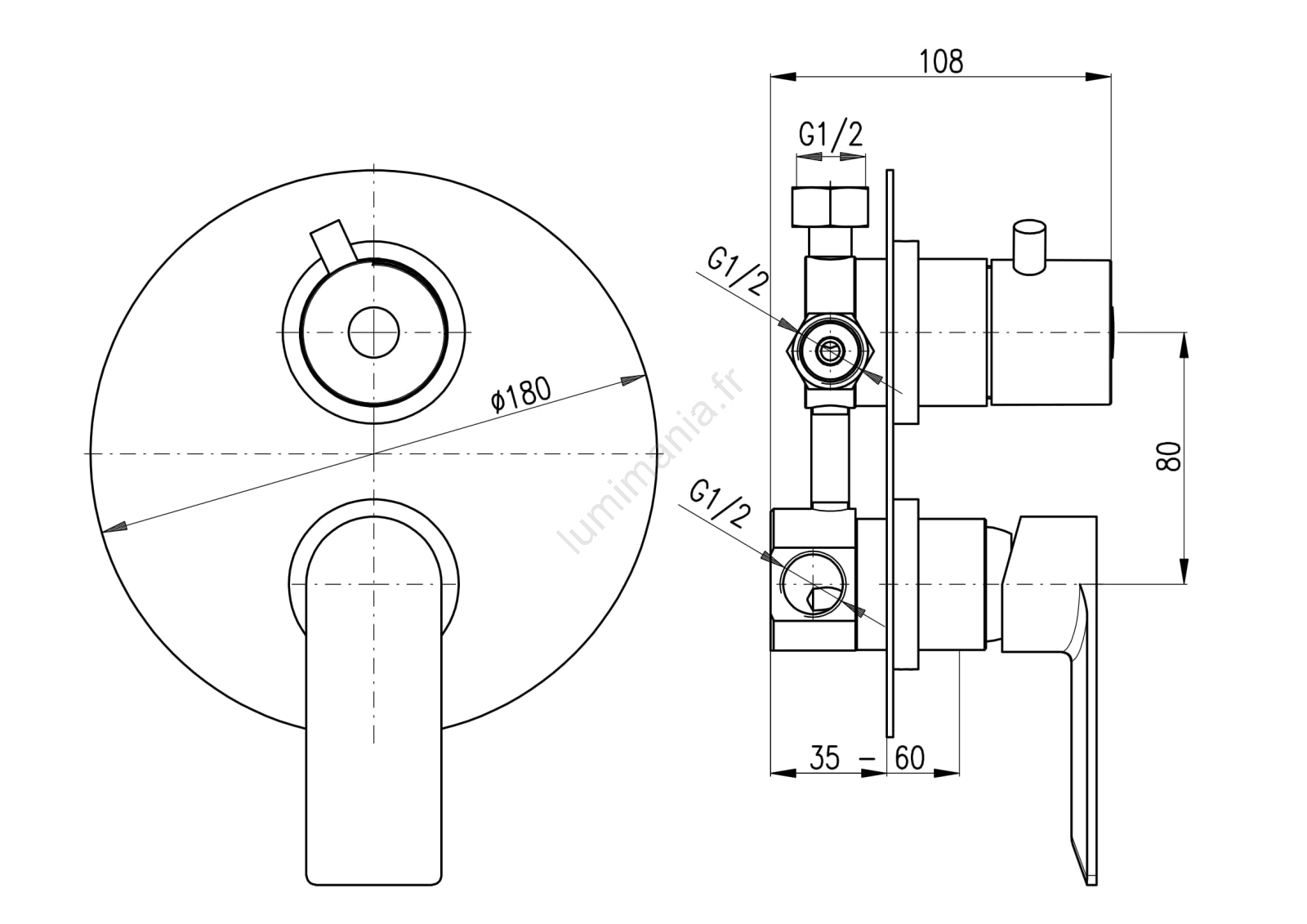 • Diamètre de la cartouche céramique : 35 mm.