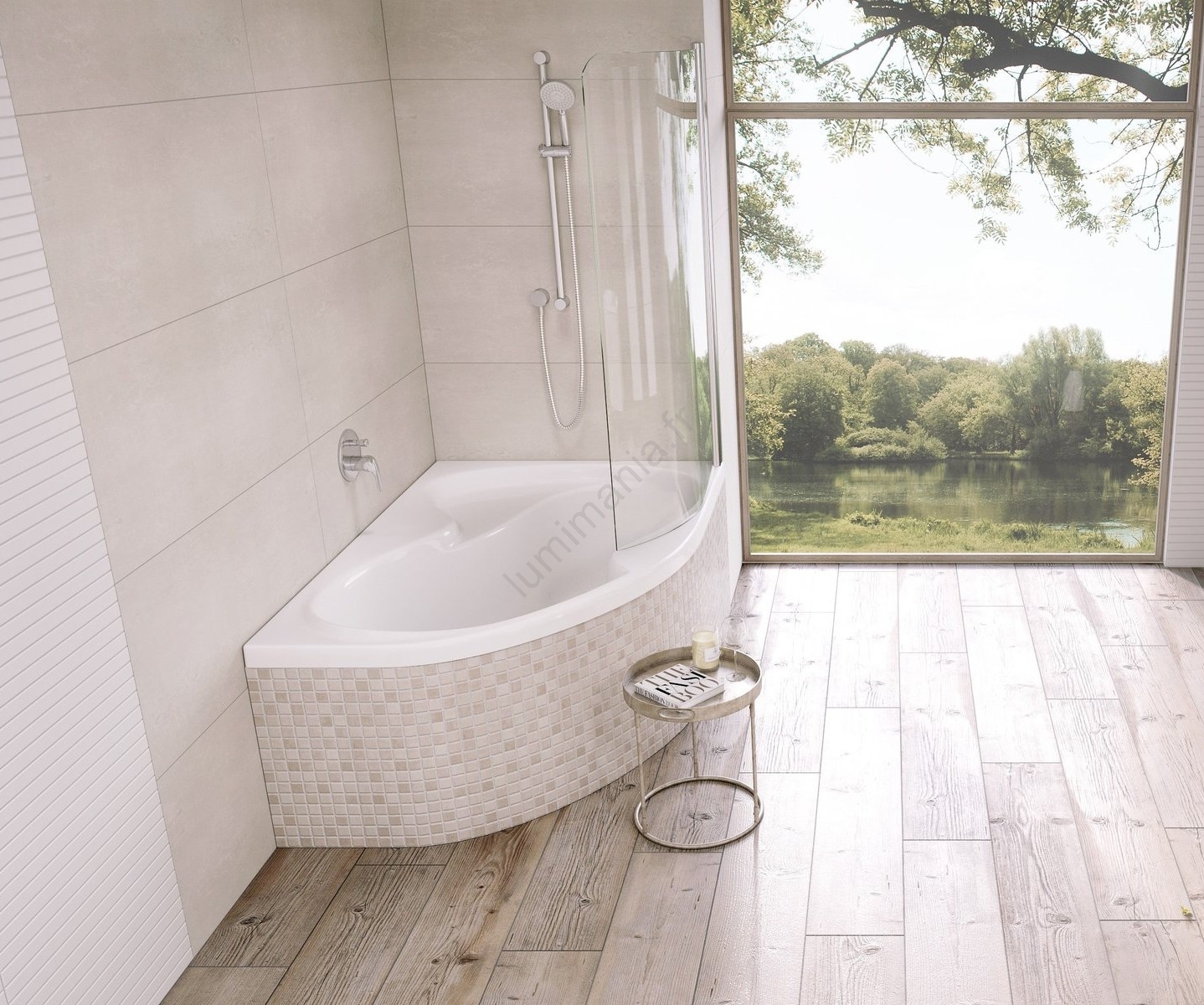 • La baignoire peut être complétée par un pare-douche, transformant l'espace en une douche élégante et fonctionnelle.