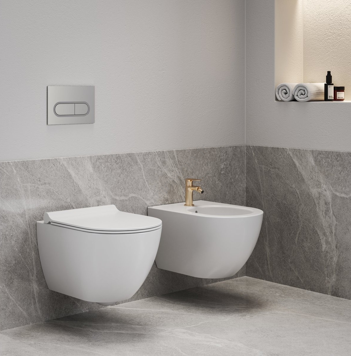 • Pour une apparence uniforme et harmonieuse, le bidet peut être complété par les produits de la gamme Chrome, qui inclut également des lavabos, des WC, du mobilier et des accessoires de salle de bains.