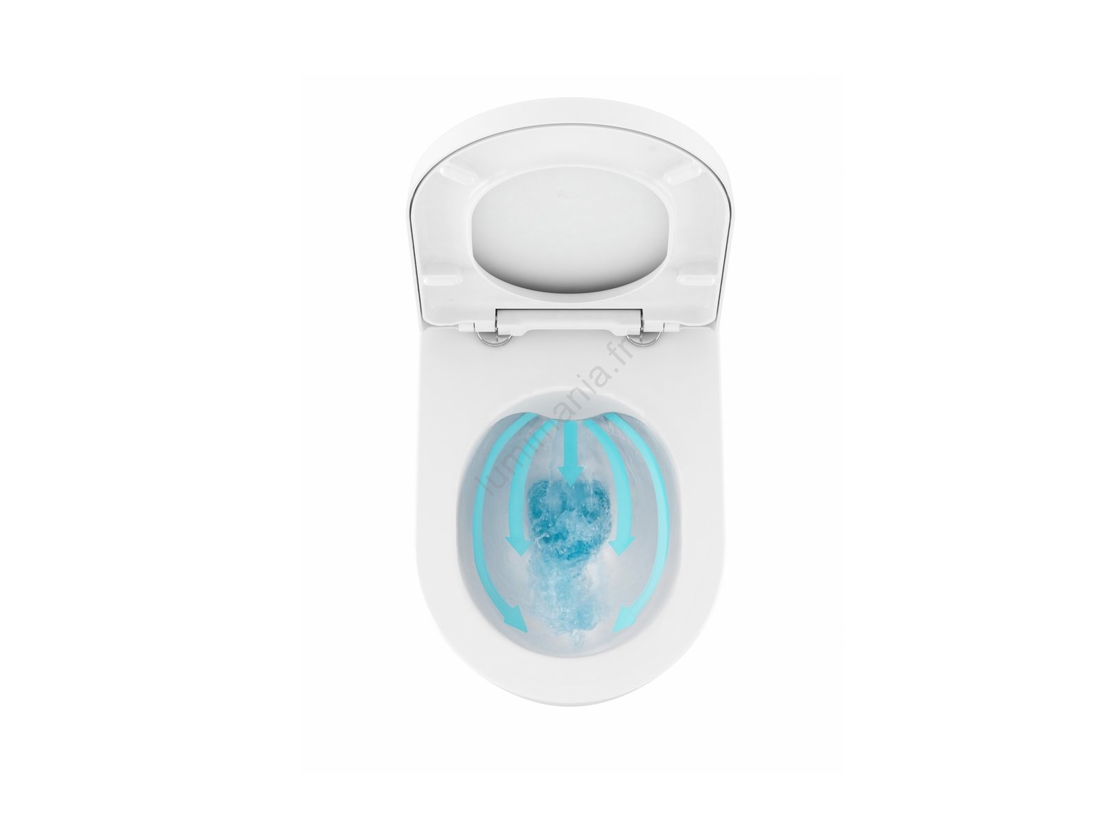 • Elle est équipée de la technologie de chasse RimOff (sans rebord), qui permet de rincer l’intégralité de la surface de la cuvette et garantit une hygiène optimale.