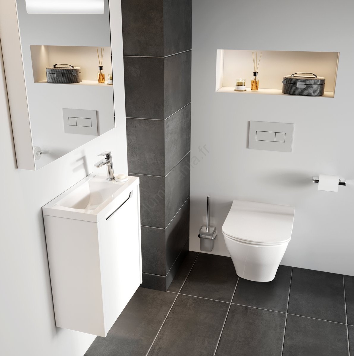 • Pour une fonctionnalité complète, nous recommandons d'acheter séparément le module d'installation de chasse, le bouton de commande et l'abattant WC Classic ou Classic Slim à fermeture amortie SoftClose.