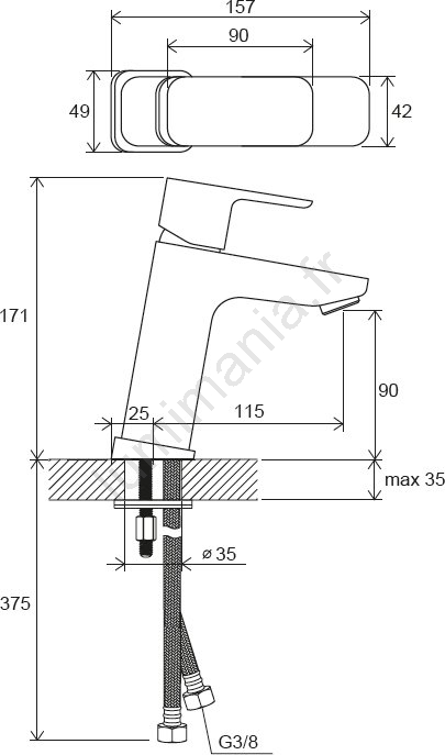 • Le mitigeur convient aux lavabos 10°, mais peut également être combiné sans problème avec d'autres types de lavabos.
