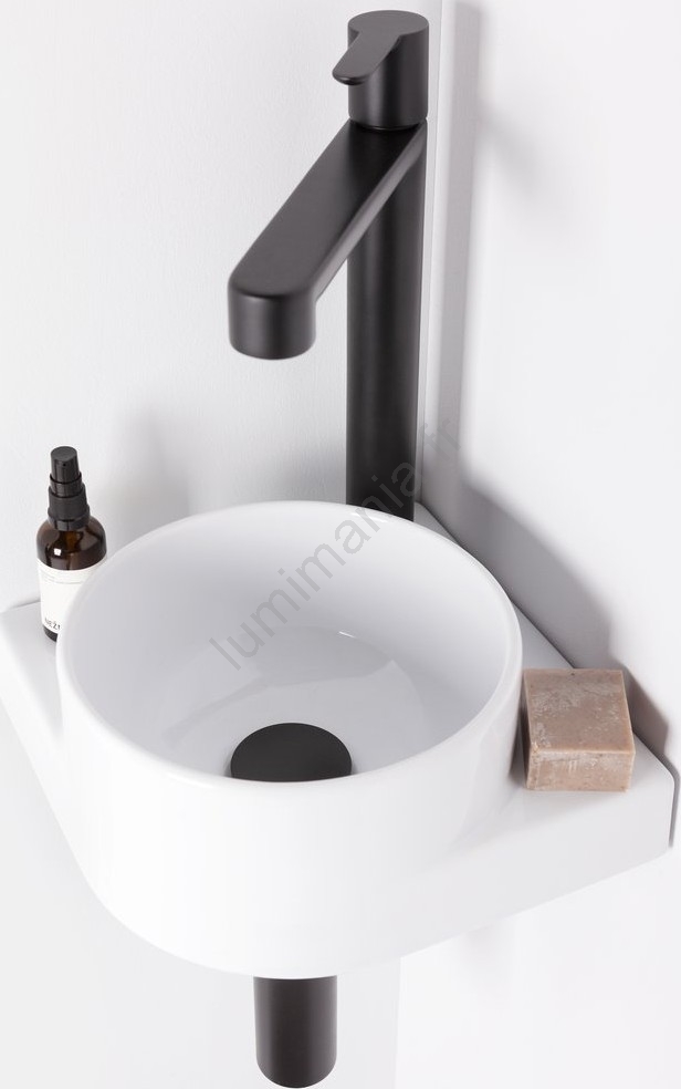 • Le mitigeur lavabo Puri en finition noir mat dispose d'une hauteur extra-longue de 320 mm, idéale pour les vasques à poser.