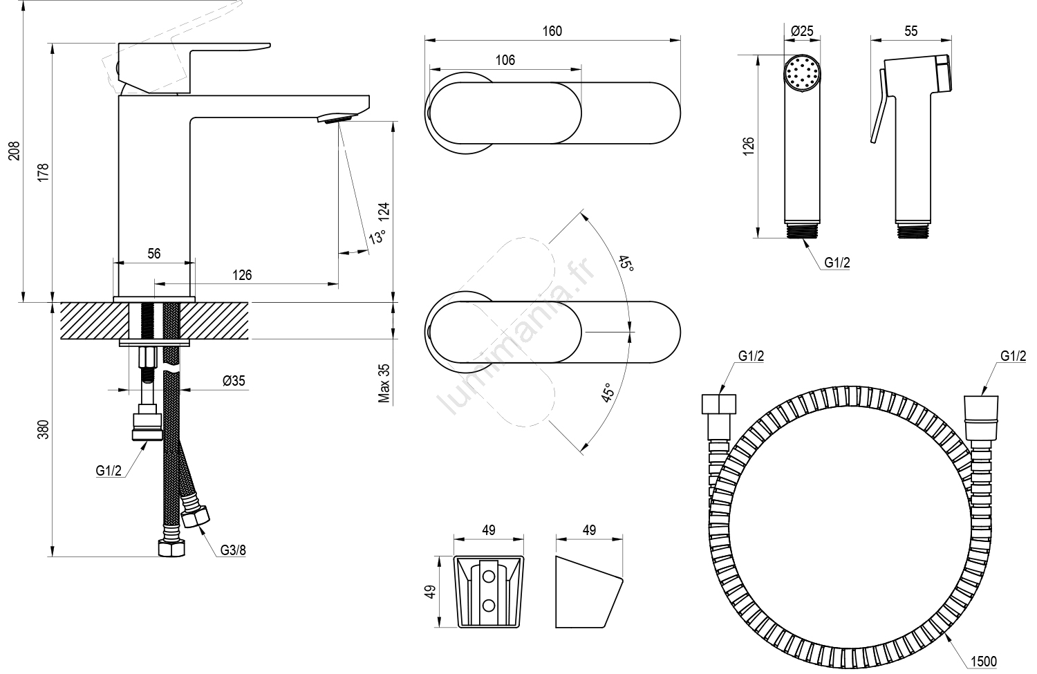 • Le mitigeur comprend une douchette à main avec clapet anti-retour, permettant une hygiène intime confortable sans installer de bidet séparé.