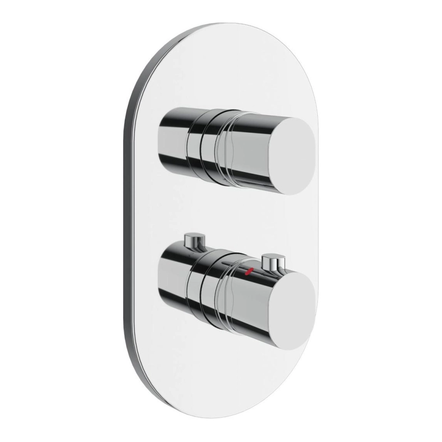 • Mitigeur thermostatique encastré 2 voies Chrome II au fini chromé élégant, conçu pour être monté dans un boîtier d'installation.