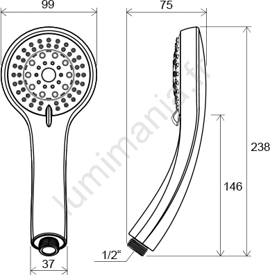 • La tête de douche de 99 mm de diamètre garantit une répartition uniforme du jet d'eau.