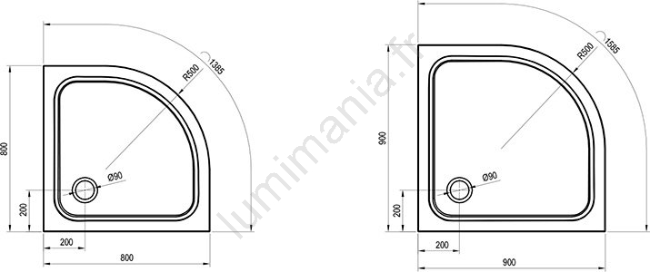 • Diamètre de l'ouverture pour siphon : 9 cm.