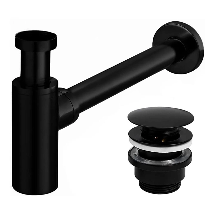 REA-A5215 - Siphon pour lavabo avec bonde CLICK-CLACK Ø 6,4 cm, noir mat