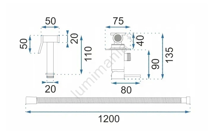 • Longueur du flexible : 120 cm.