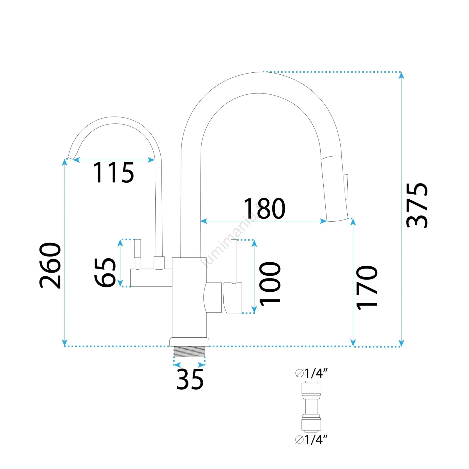 • Mitigeur de cuisine monocommande avec douchette extractible, bec pivotant et raccordement pour filtration.