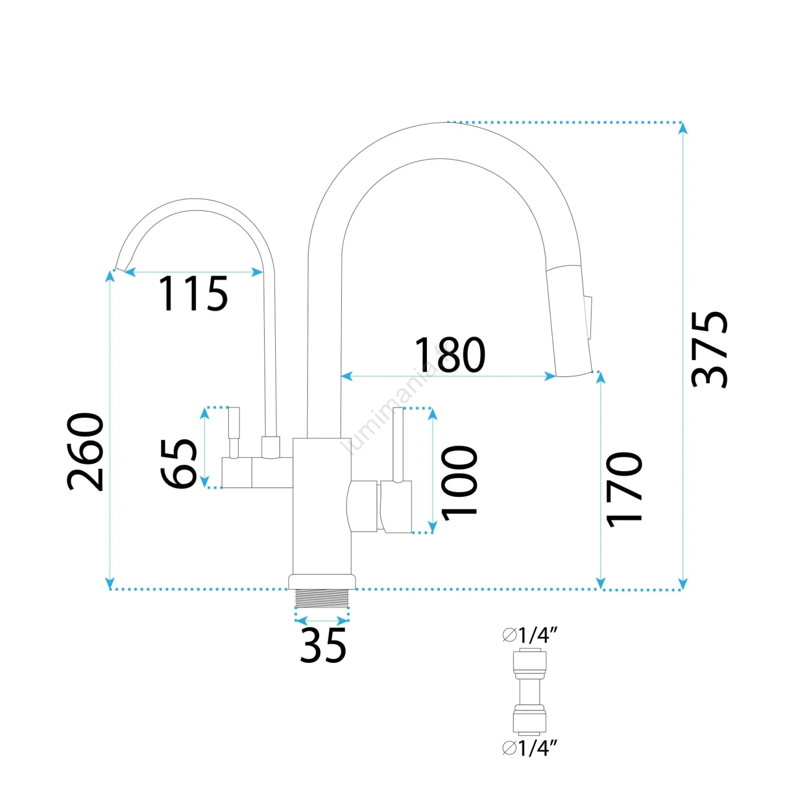 • Mitigeur de cuisine monocommande avec douchette extractible, bec pivotant et filtration.