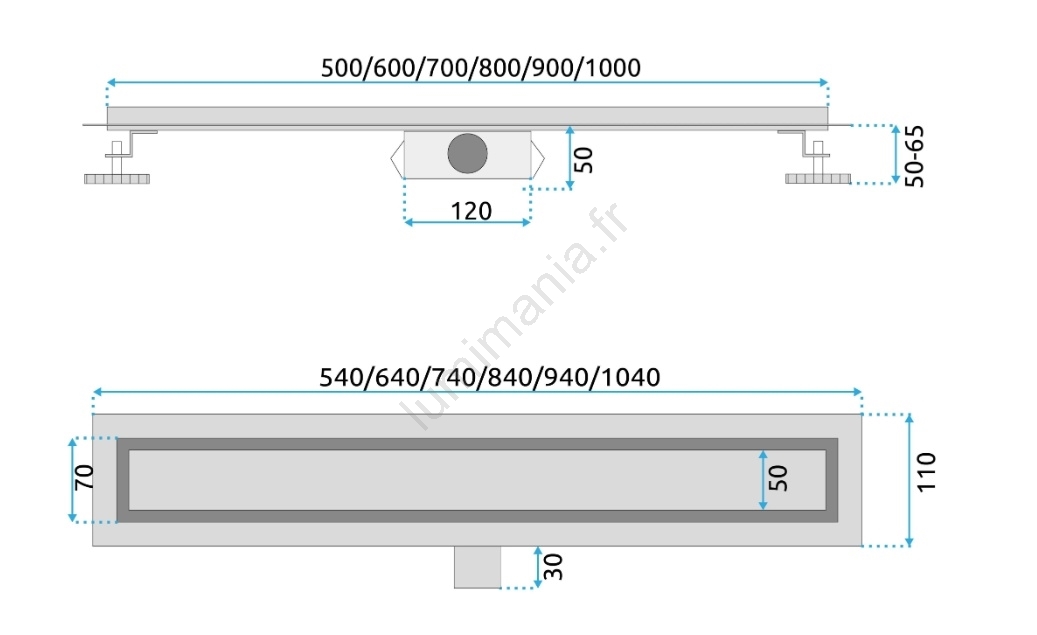 • Caniveau linéaire de 70 cm, finition inox.