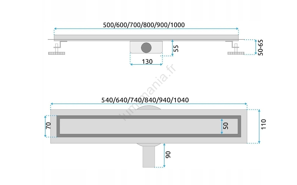 • Caniveau linéaire Neox Pro de 70 cm, finition élégante en acier inoxydable.