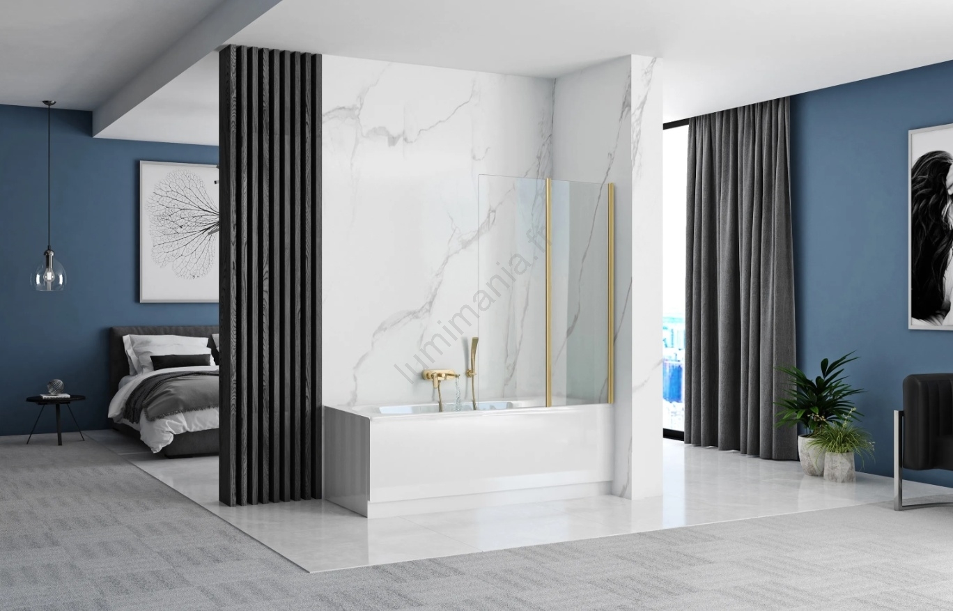 REA-K9777 - Paroi de baignoire pliante AGAT 140x100 cm doré brossé/transparent