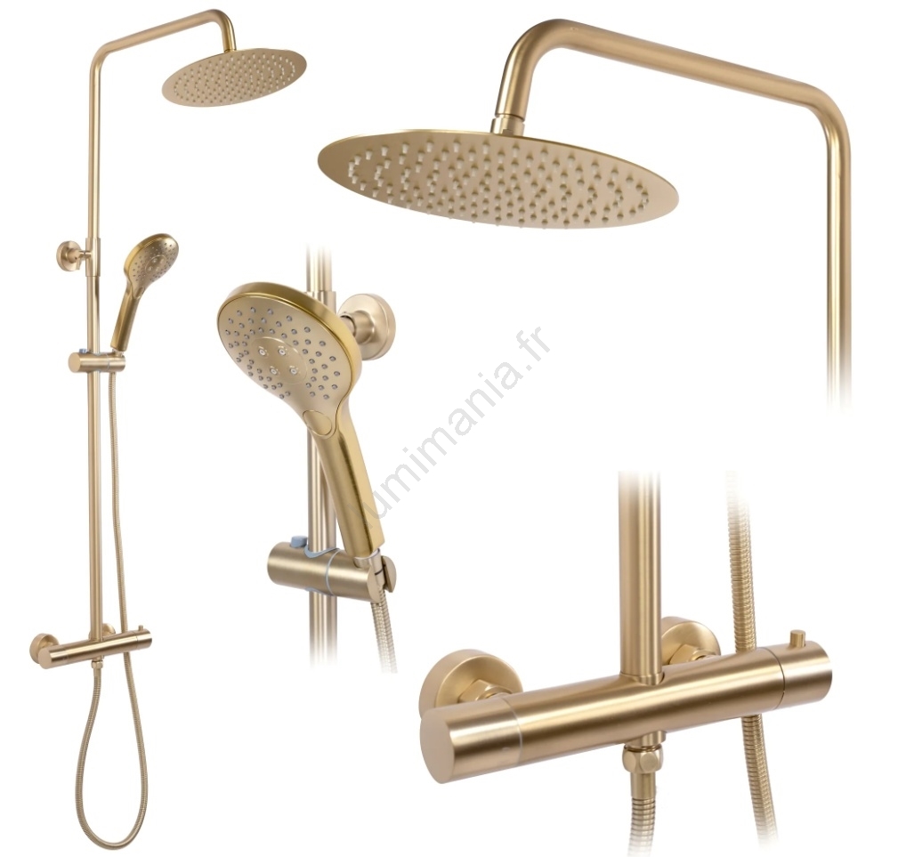 REA-P6602 - Ensemble de douche avec mitigeur thermostatique VINCENT, finition dorée brossée