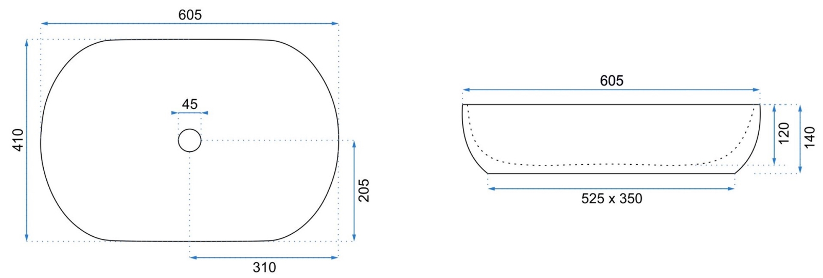 • REA-U0024 - Vasque à poser CLEO 41 x 60,5 cm en céramique / blanc brillant