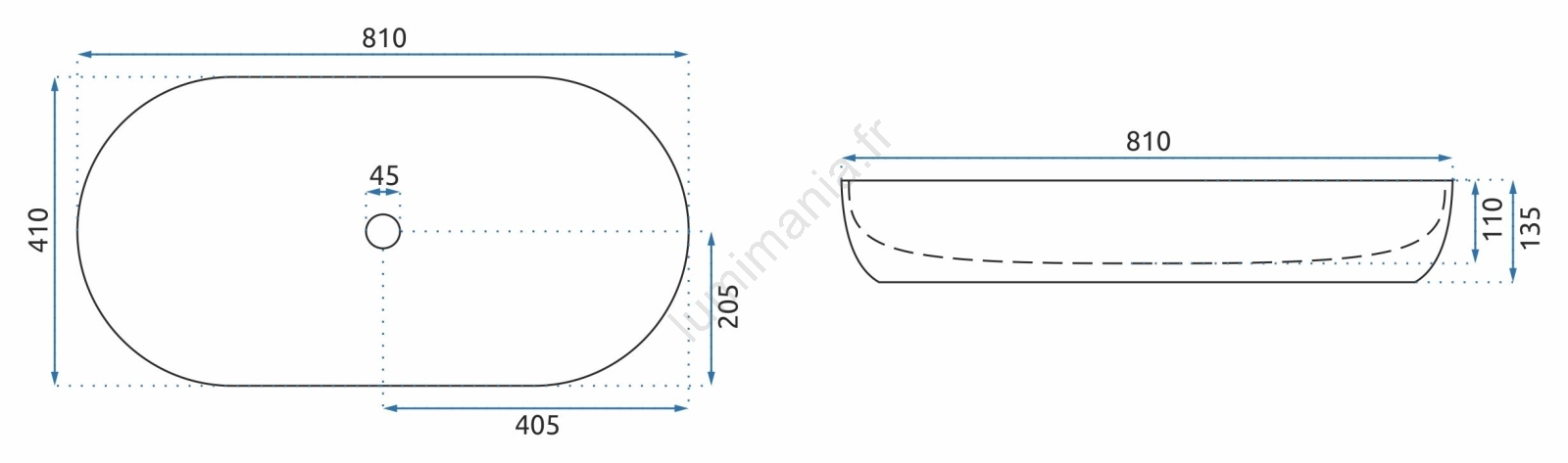 REA-U0563 - Lavabo à poser CLEO 41x81 cm céramique/blanc brillant