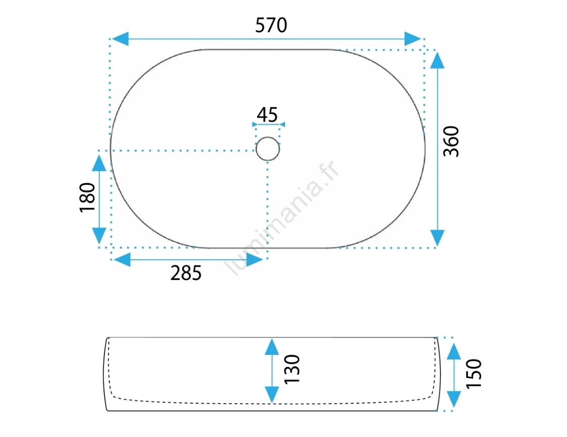 REA-U0600 - Lavabo à poser ALMA 36x57 cm céramique/blanc brillant