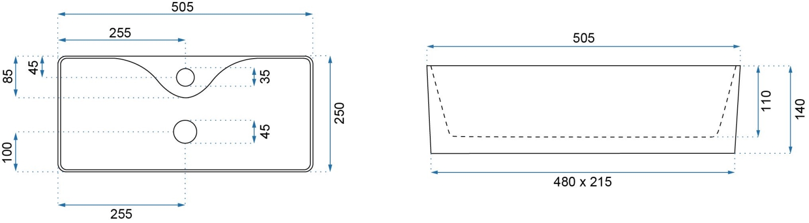 REA-U0699 - Lavabo à poser MERY 25 x 50,5 cm céramique / blanc brillant
