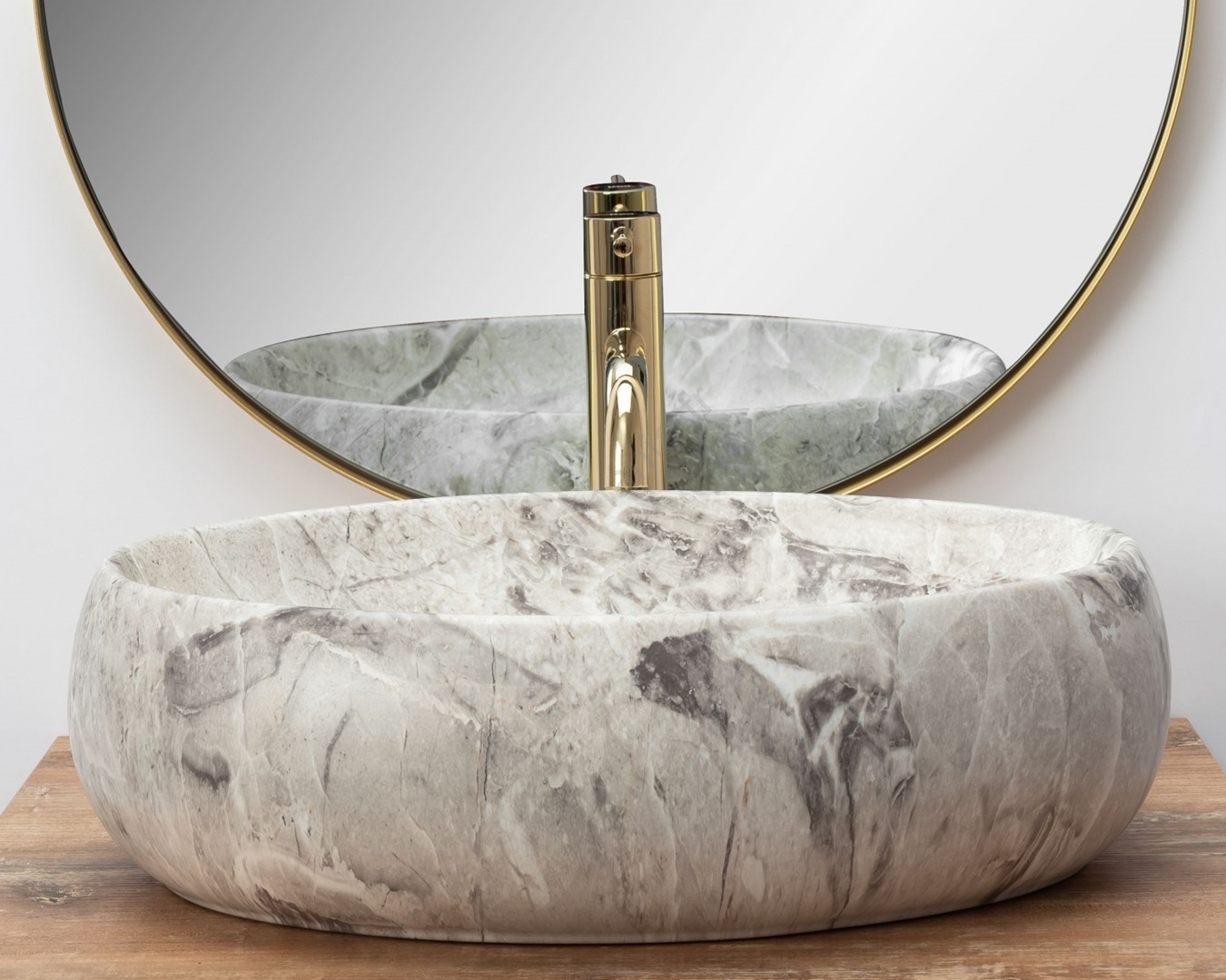 • REA-U8567 - Vasque à poser LINDA 34 x 48,5 cm en céramique, décor marbre