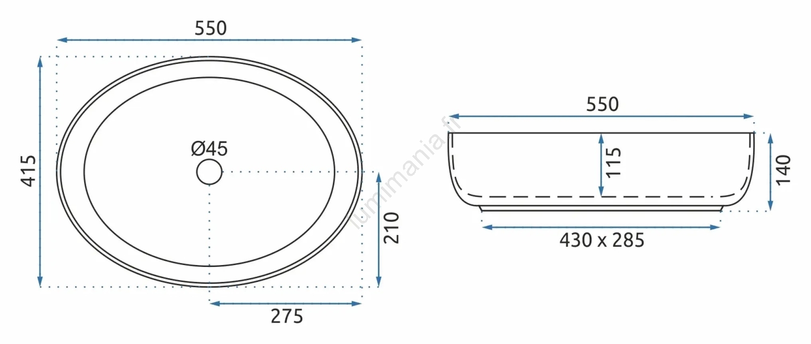 • Le lavabo est conçu pour une pose sur plan, mais peut aussi être associé à un meuble sous-lavabo.