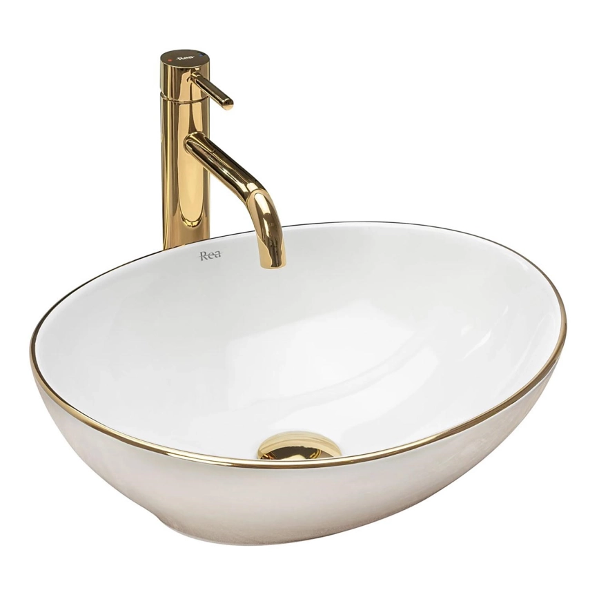 REA-U3287 - Vasque à poser SOFIA 34,5x41 cm céramique/blanc brillant/doré