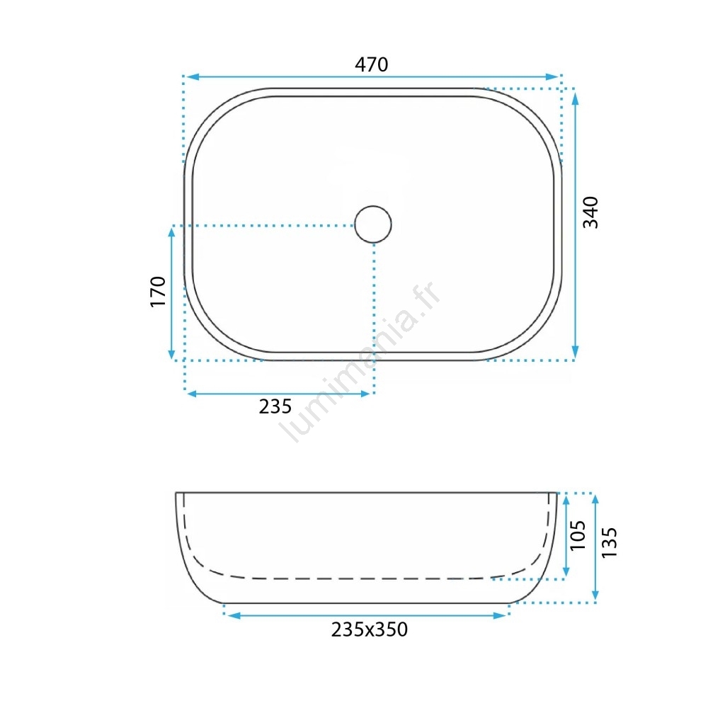 REA-U3323 - Vasque à poser BELINDA 33,5x46,5 cm céramique/effet pierre