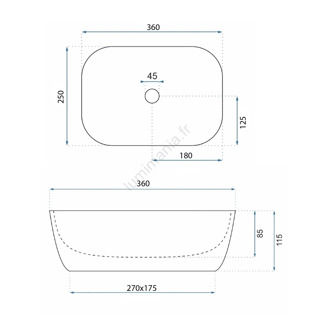• REA-U5667 - Vasque à poser BELINDA MINI 25x36 cm céramique/blanc brillant