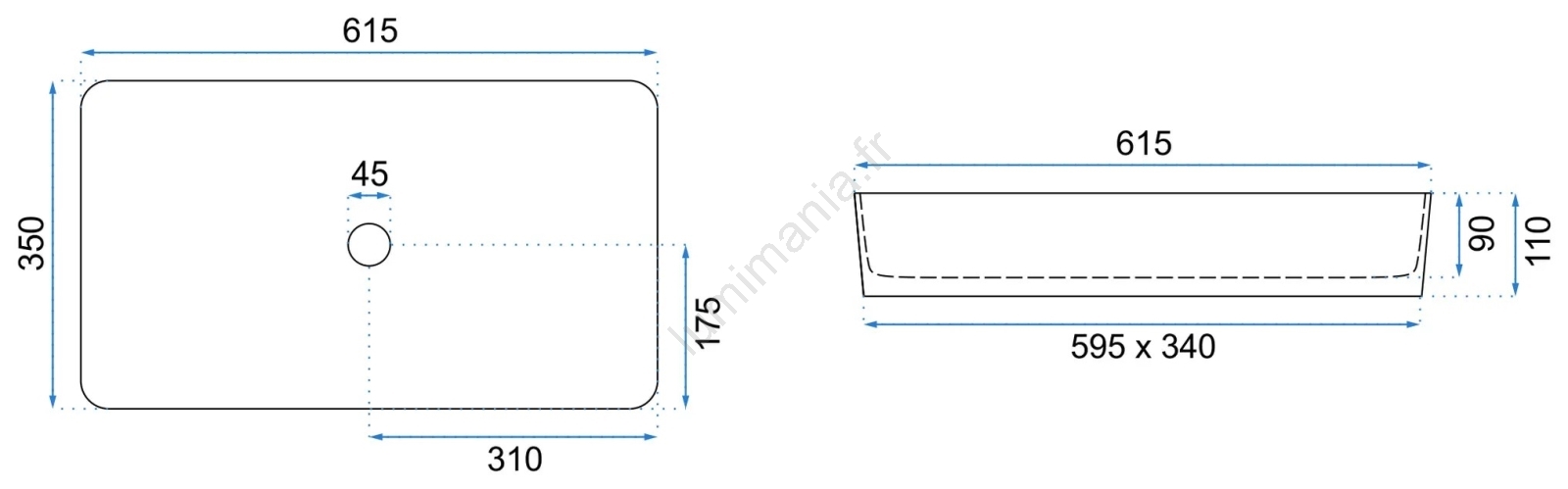 • Le lavabo est prévu pour une pose sur plan, mais peut également être associé à un meuble.