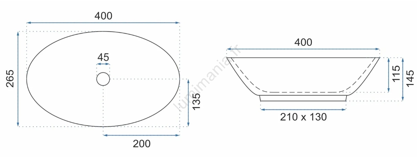 REA-U5804 - Lavabo à poser PAMELA MINI 26,5 x 40 cm céramique/blanc brillant