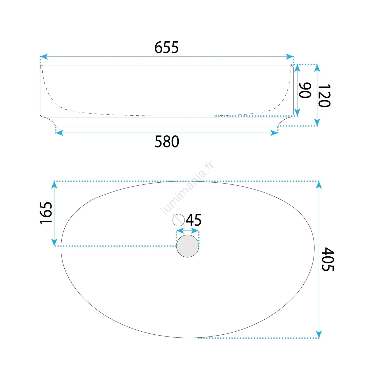 • Le lavabo est conçu pour une pose sur plan, mais peut également être associé à un meuble sous-vasque.