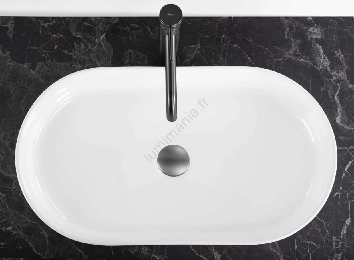 REA-U6526 - Vasque à poser VANDA 34 x 60 cm en céramique, finition blanc brillant
