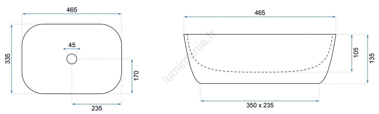 • REA-U3323 - Vasque à poser BELINDA 33,5x46,5 cm céramique/effet pierre