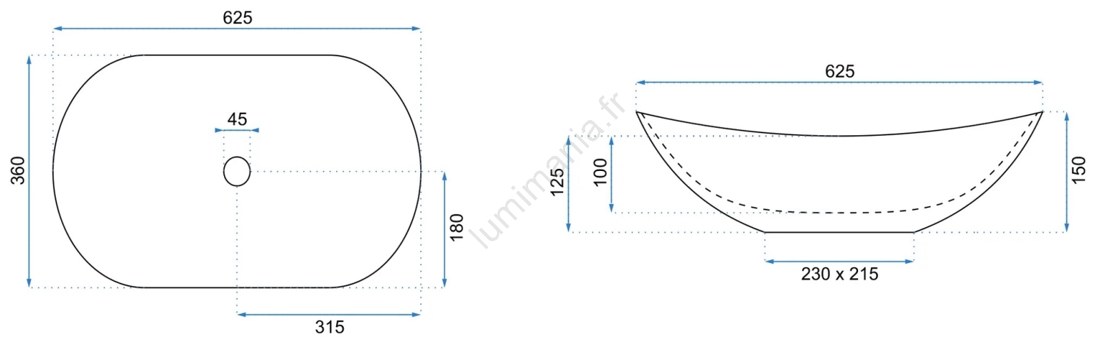 • Le lavabo est fabriqué en céramique sanitaire de haute qualité.