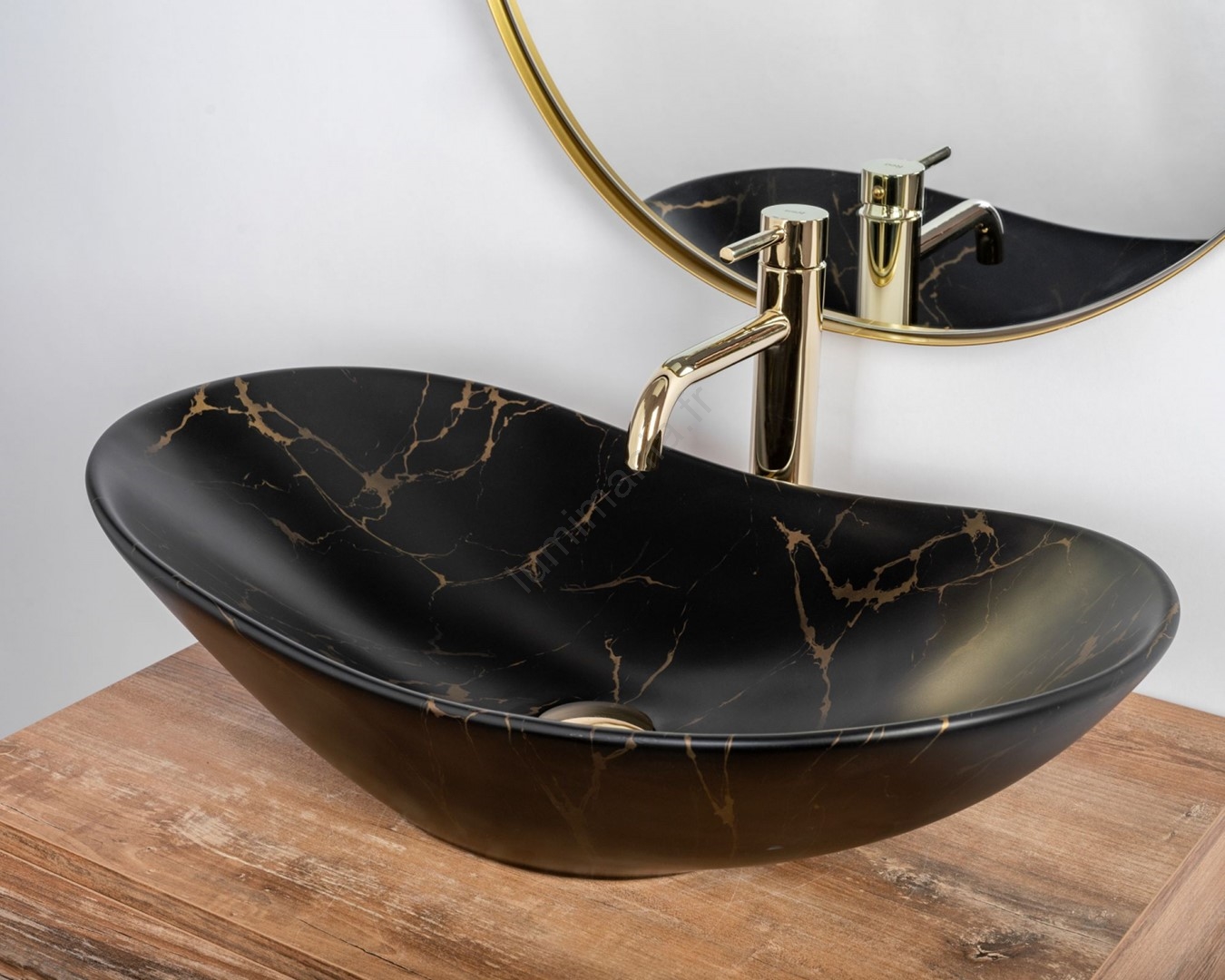 REA-U7478 - Vasque à poser ROYAL 36x62 cm céramique/noir/décor effet marbre