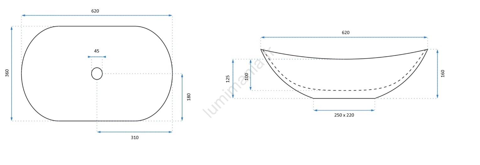 • REA-U8597 - Vasque à poser ROYAL 36 x 62 cm, céramique / décor marbre