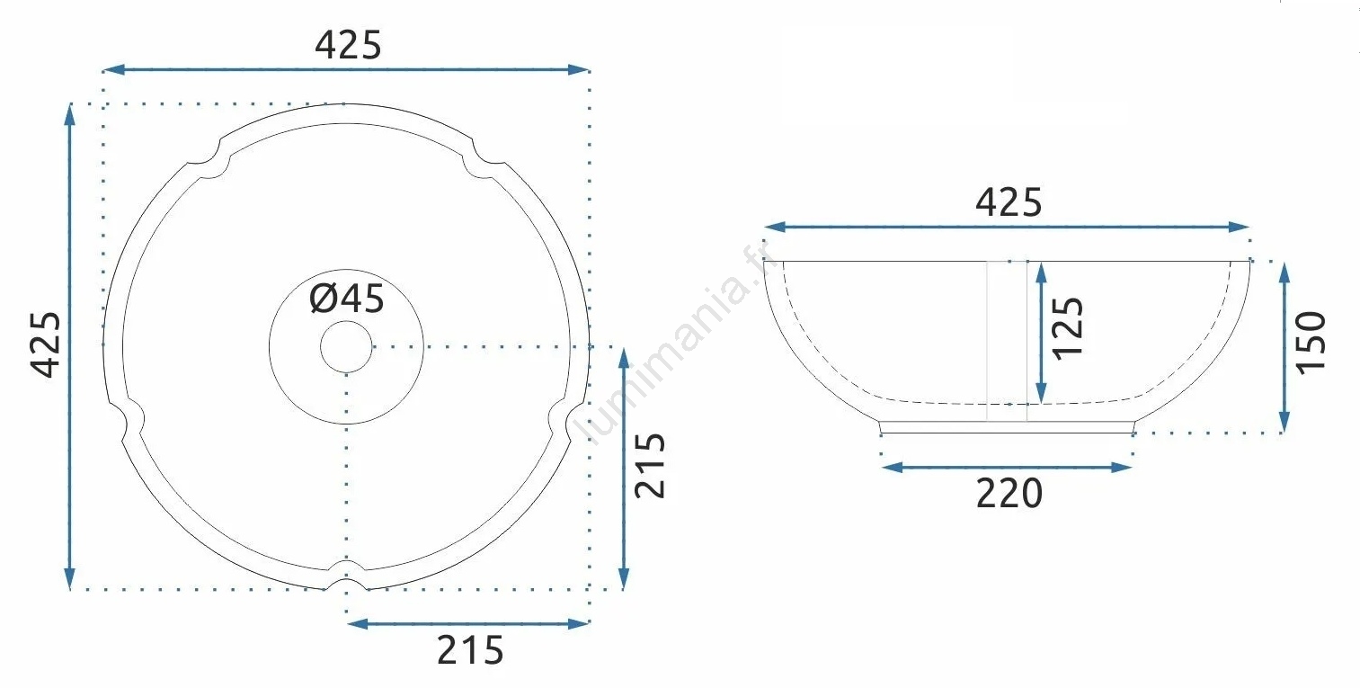 • REA-U5666 - Vasque à poser VIVIEN Ø 42,5 cm en céramique, motif ornemental