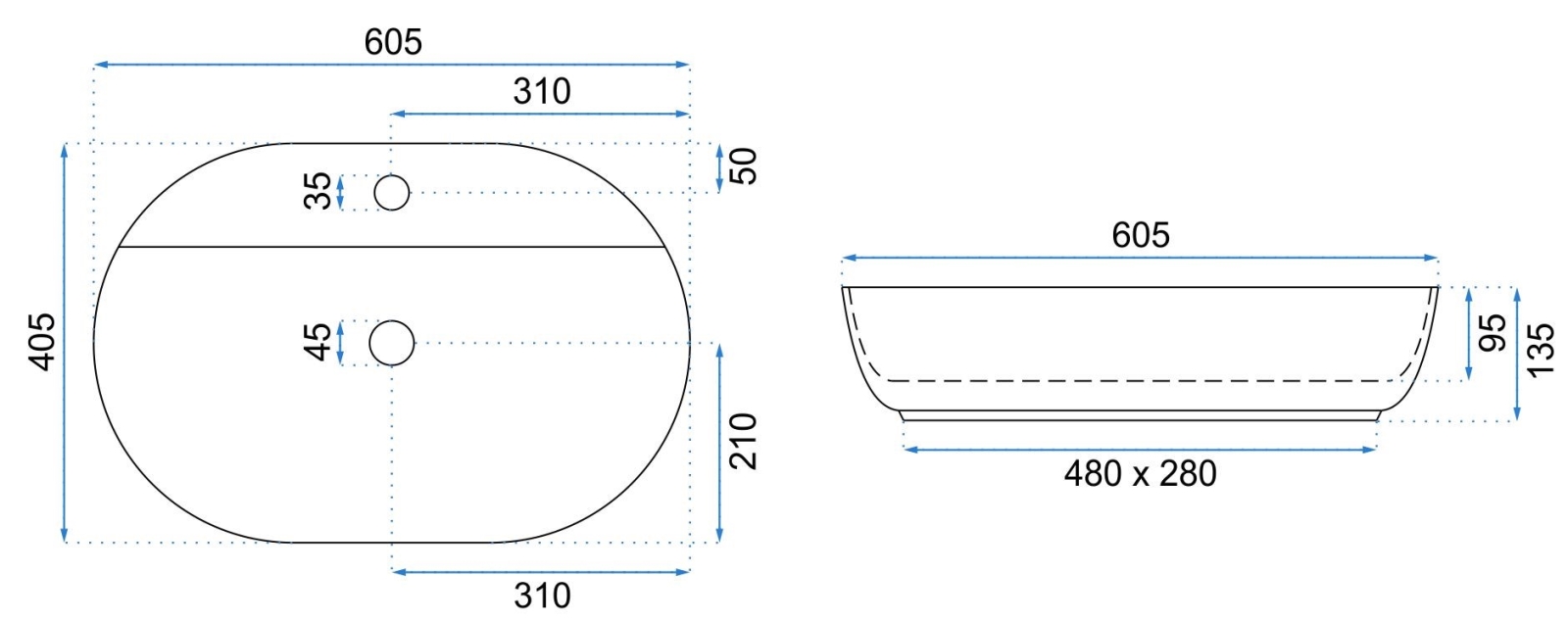 • Le lavabo est fabriqué en céramique sanitaire de haute qualité.