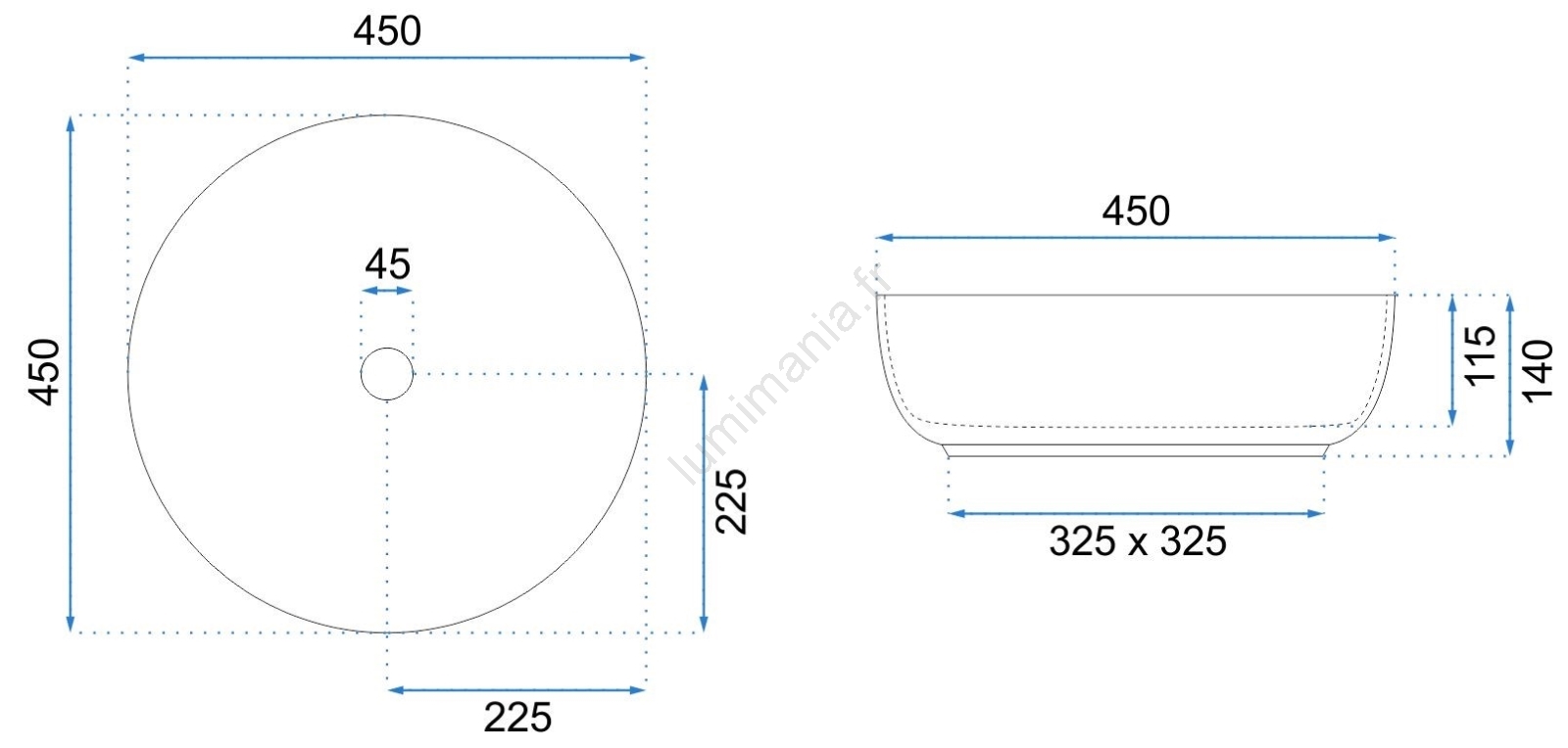 REA-U8493 - Lavabo à poser ELMA Ø 45 cm, céramique / blanc brillant