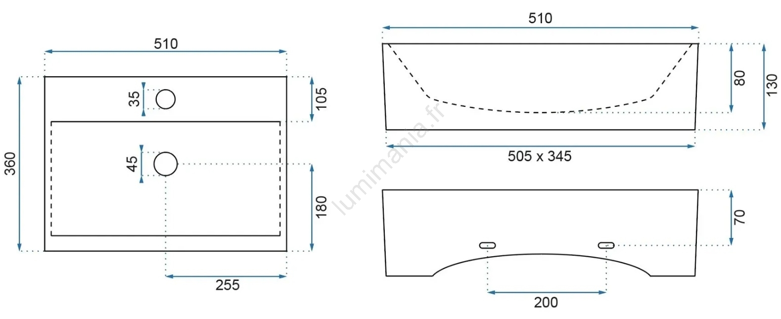 • REA-U8536 - Lavabo à poser sur plan GRETA 39x56 cm céramique/blanc brillant