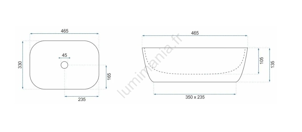 • REA-U3323 - Vasque à poser BELINDA 33,5x46,5 cm céramique/effet pierre