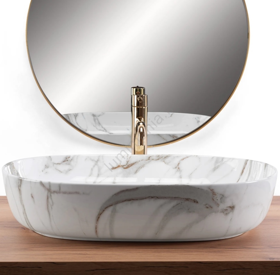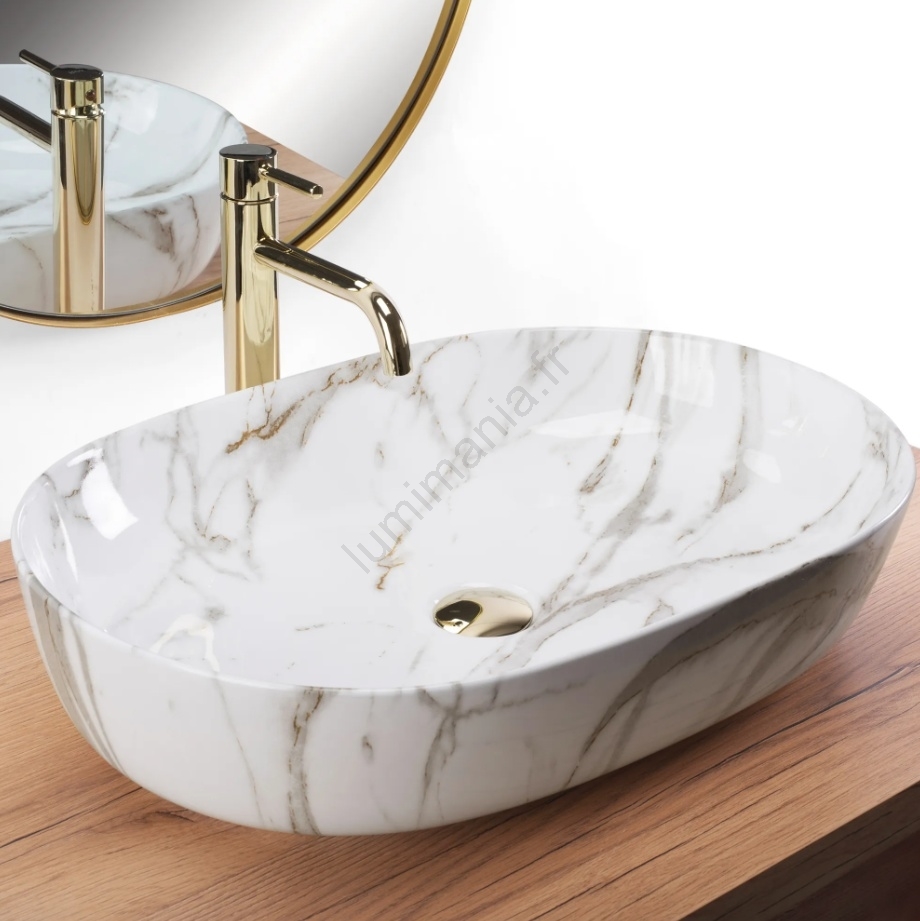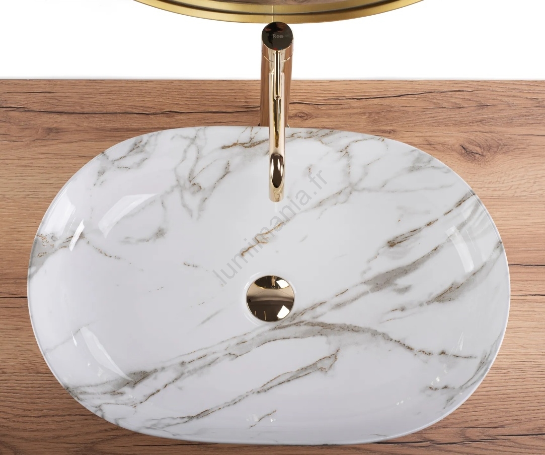 REA-U9656 - Vasque à poser CLEO 41 x 60,5 cm en céramique, décor effet marbre