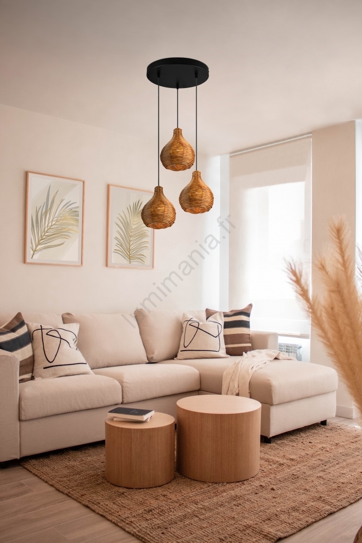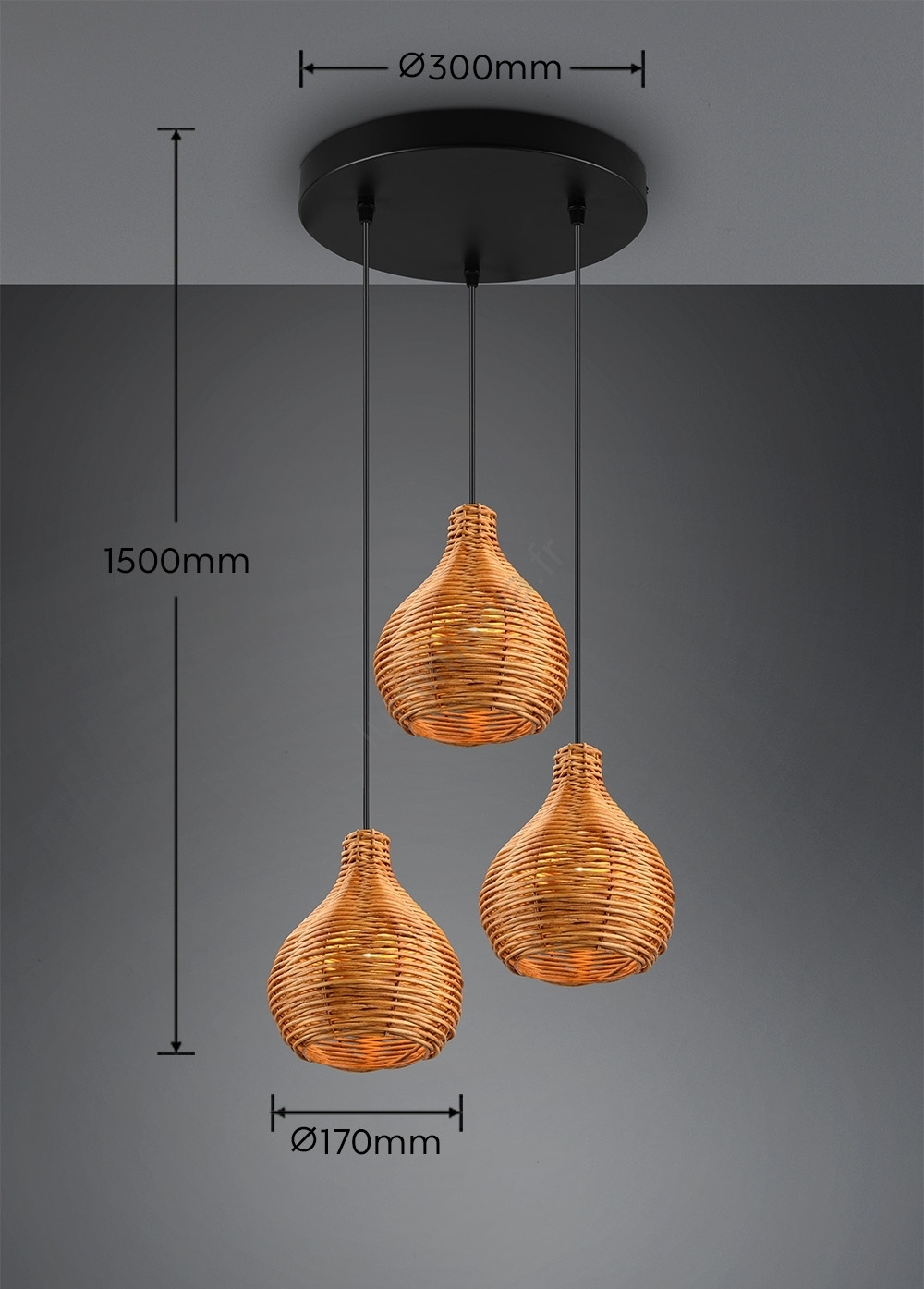 Reality - Suspension sur câble SPROUT 3xE14/40W/230V marron/rotin caractérise un design agréable et fonctionnel.  Une ampoule à culot E14 convient pour ce luminaire. Ici, vous pouvez acheter d'autres ampoules à des prix avantageux. Vous aurez un ajout intéressant dans votre intérieur.