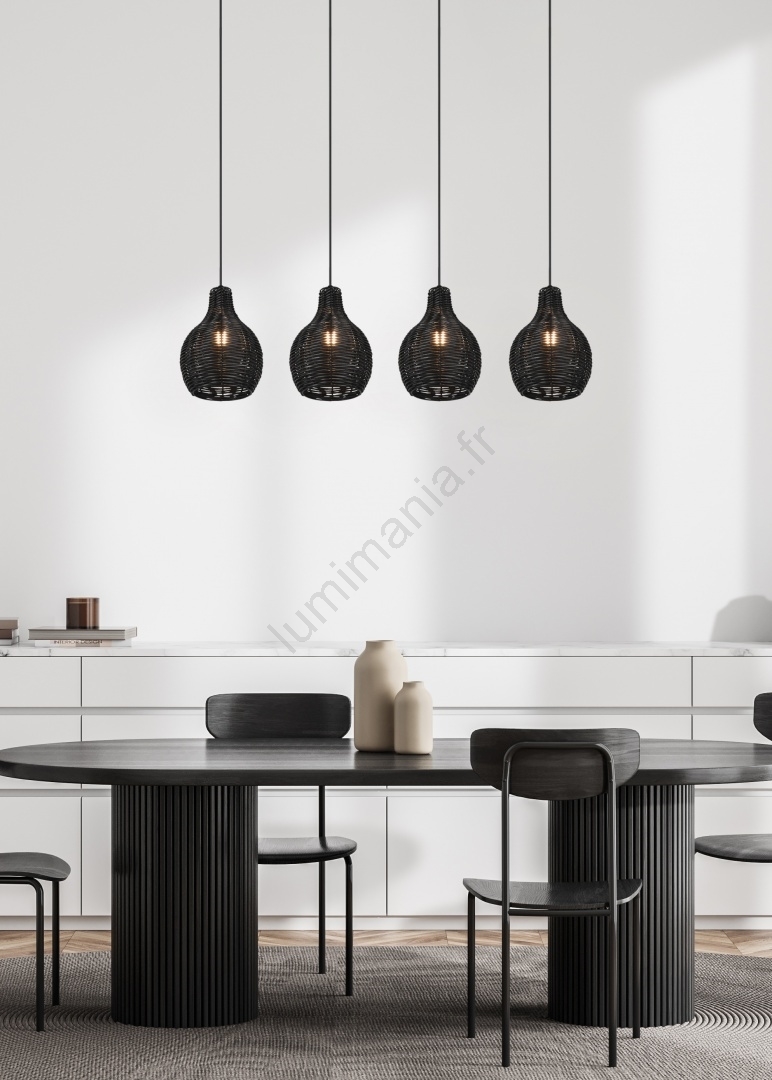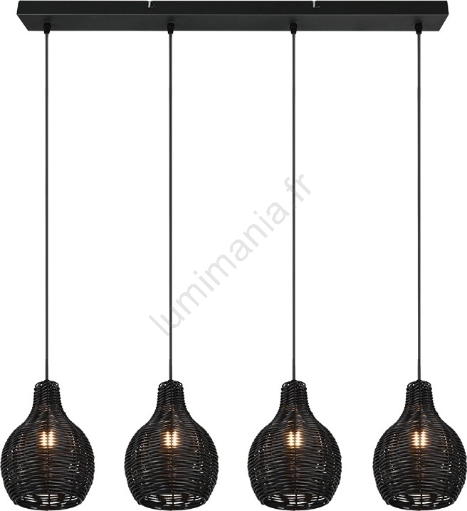 Reality - Suspension sur câble SPROUT 4xE14/30W/230V noir/rotin caractérise un design agréable et fonctionnel.  Une ampoule à culot E14 convient pour ce luminaire. Ici, vous pouvez acheter d'autres ampoules à des prix avantageux. Vous aurez un ajout intéressant dans votre intérieur.